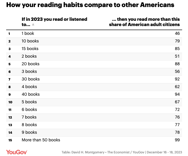 “85% of self-made millionaires read two or more [non-fiction] books per month.”